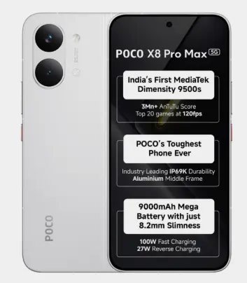 Poco X8 Pro Max ₹42,999 Battery Dimensity 9500S ~3M Best Battery